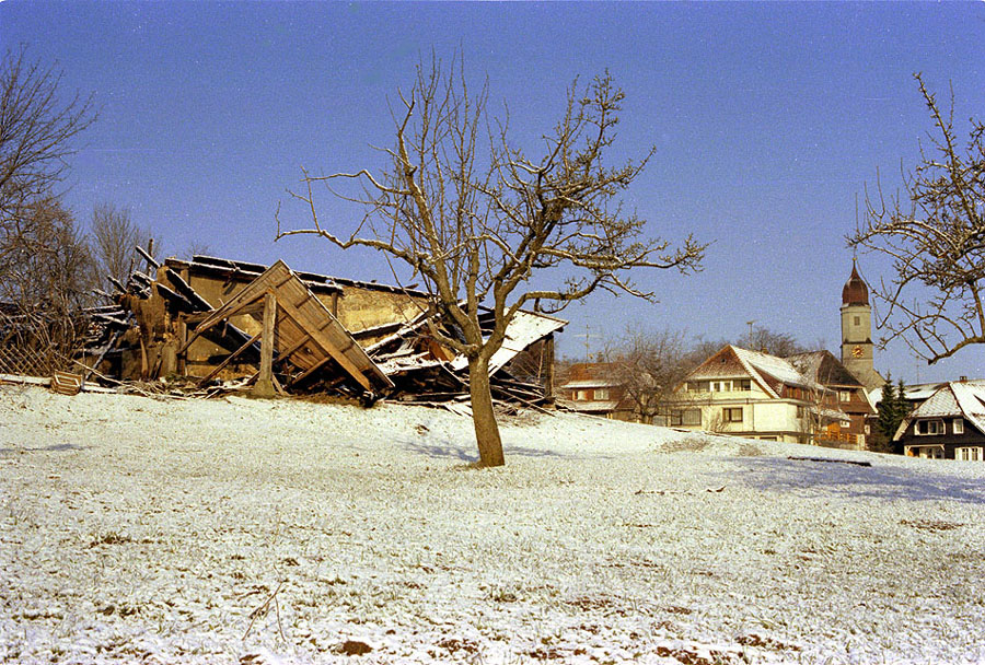 Die Spuren des abgebrannten Hauses im Hebelweg sind ebenfalls weiß gepudert.