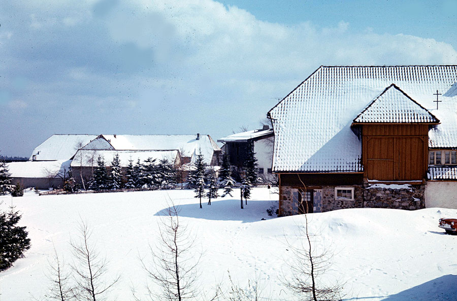 Von der Dorfschmiede aus konnten wir 1975 auch auf diesen verschneiten Hof sehen.