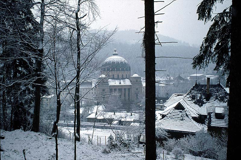 auf einem Pfad durch den Wald nochmals am Dom von St. Blasien vorbei