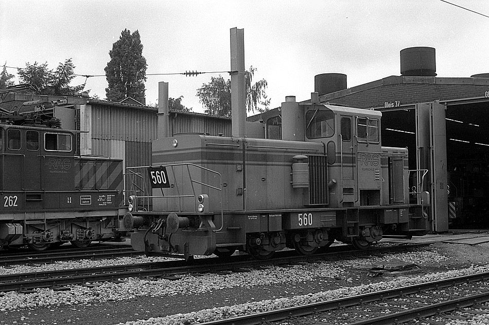 Lok 560 abgestellt mit anderen RAG-Loks in Gladbeck-West am 17.07.1984.