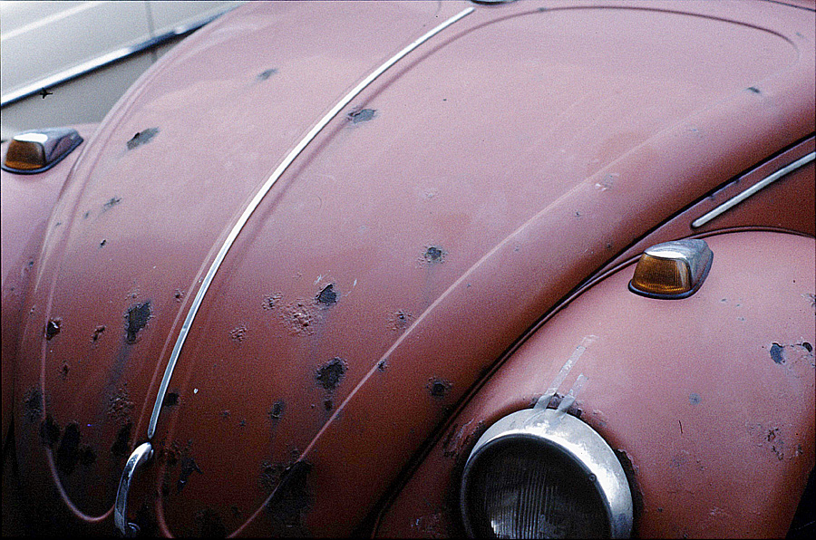 Im Herbst seines Lebens verwandelt der Käfer Steinschlagschäden in Rostkrater.