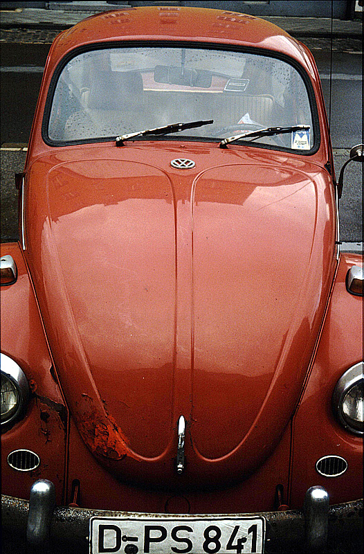 Die rote Käferhaube erinnert mich an eine Zunge.