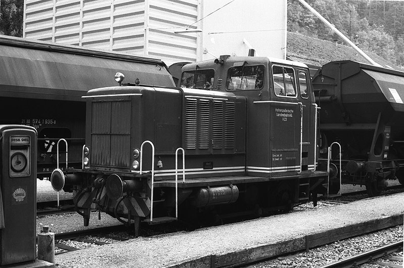 V 23 der Hohenzollerischen Landesbahn in Haigerloch am 12.08.1983.