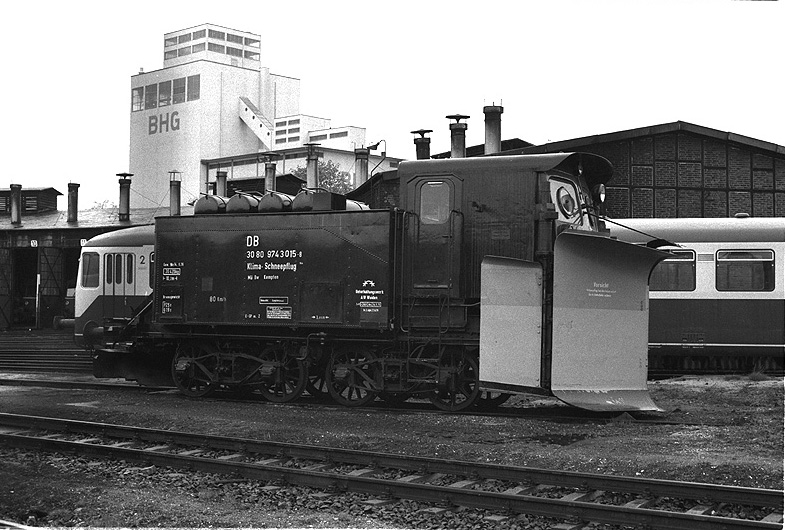 Schneepflug mit der Fahrzeugkennung 9743015 (Bauart Klima) im Bw Limburg am 30.04.1978