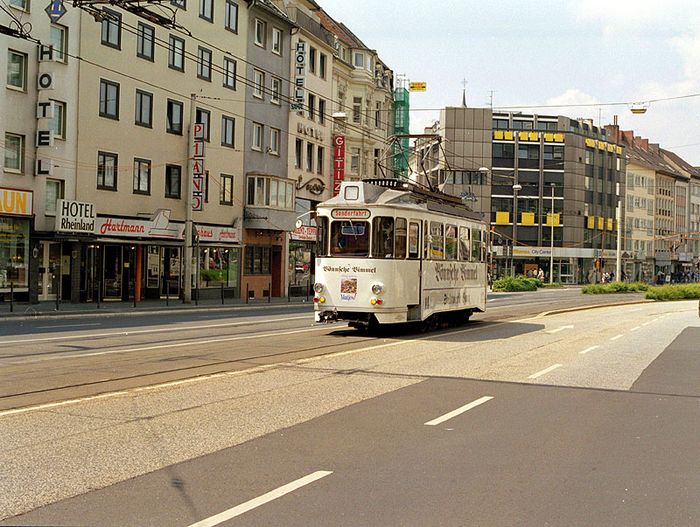 Wagen 14, die "Bönnsche Bimmel" der SWB unterwegs in Bonn am 03.06.1995.
