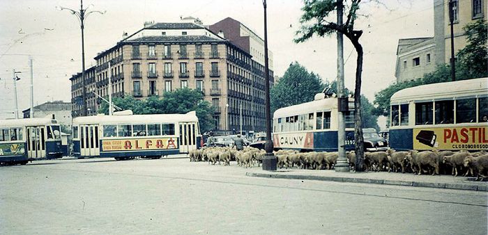Bahn 1107 vor dem Hbf. Madrid am 14.05.1958. Foto: Hans Kusch
