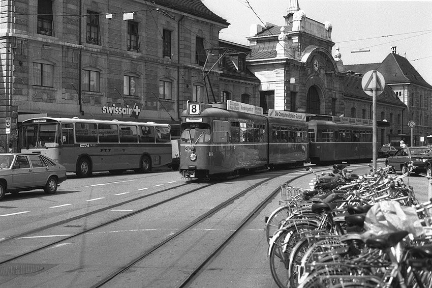 Zug 616 der BVB am 08.08.1987 vor dem Bf. Basel SBB.