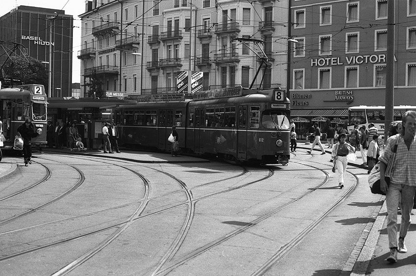 Zug 612 der BVB am 08.08.1987 vor dem Bf. Basel SBB.