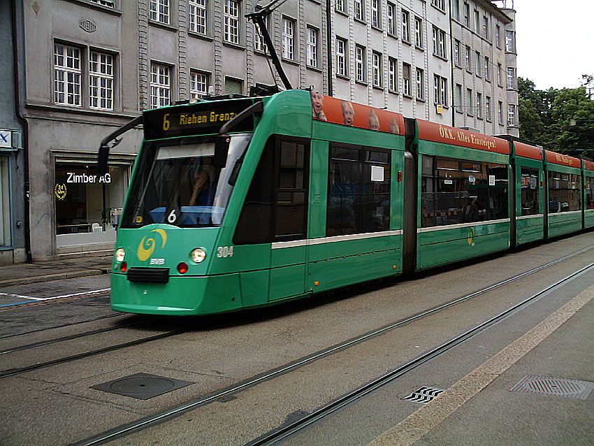 Zug 304 (Combino) der BVB in Basel im Juni 2006. Aufnahme: Sammlung Klaus Wedde.