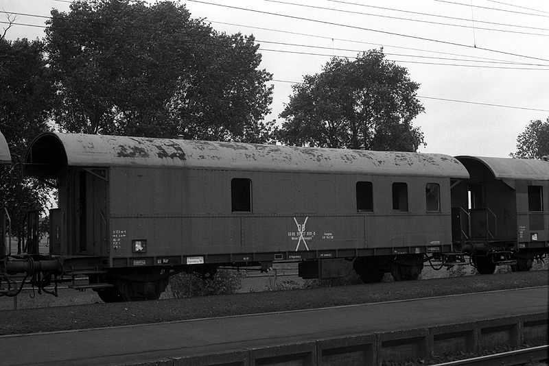 Eine "Donnerbüchse" hat hier als Bauzugwagen ein neues Leben begonnen. Aufgenommen in Darmstadt-Weiterstadt im September 1980.
